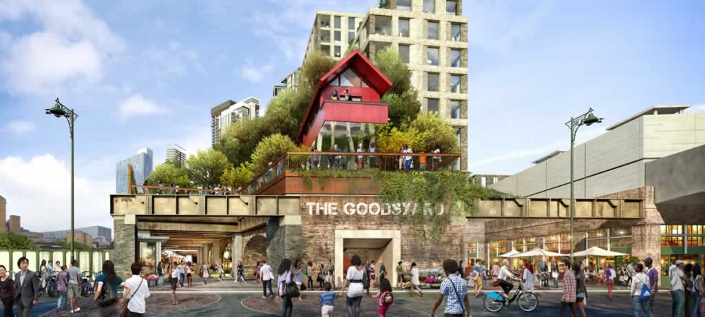 主教门古德庭院(Bishopsgate Goodsyard)楼盘位于肖尔迪奇——世界闻名的文化区,以及主教门——金融城边上一条非常热闹的街道——二者之间。这样的位置,让它成为了伦敦最受期待的改建项目。随该楼盘而来的是独立商家、初创公司、国际品牌,还有一座崭新的公园和1,300多套新房,将为这个1964年开始闲置的大货仓带来新的生机。